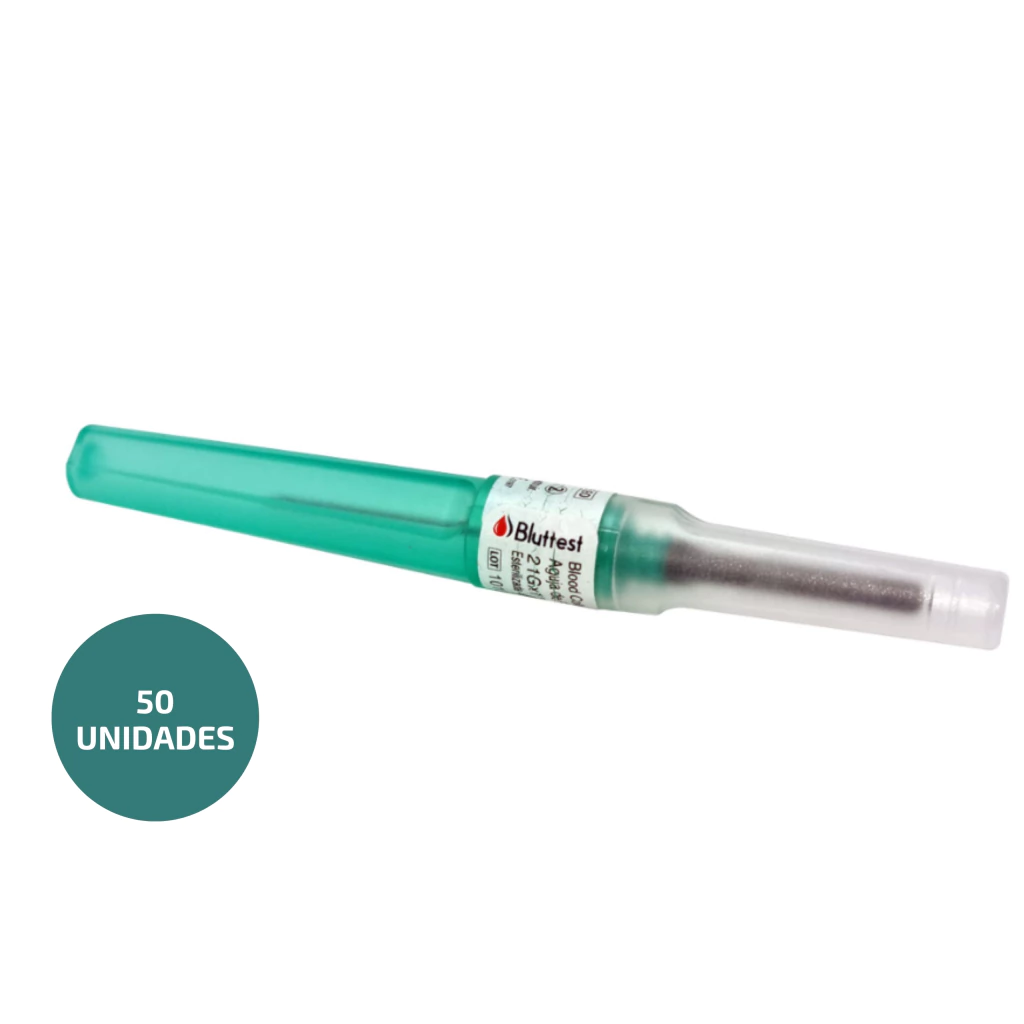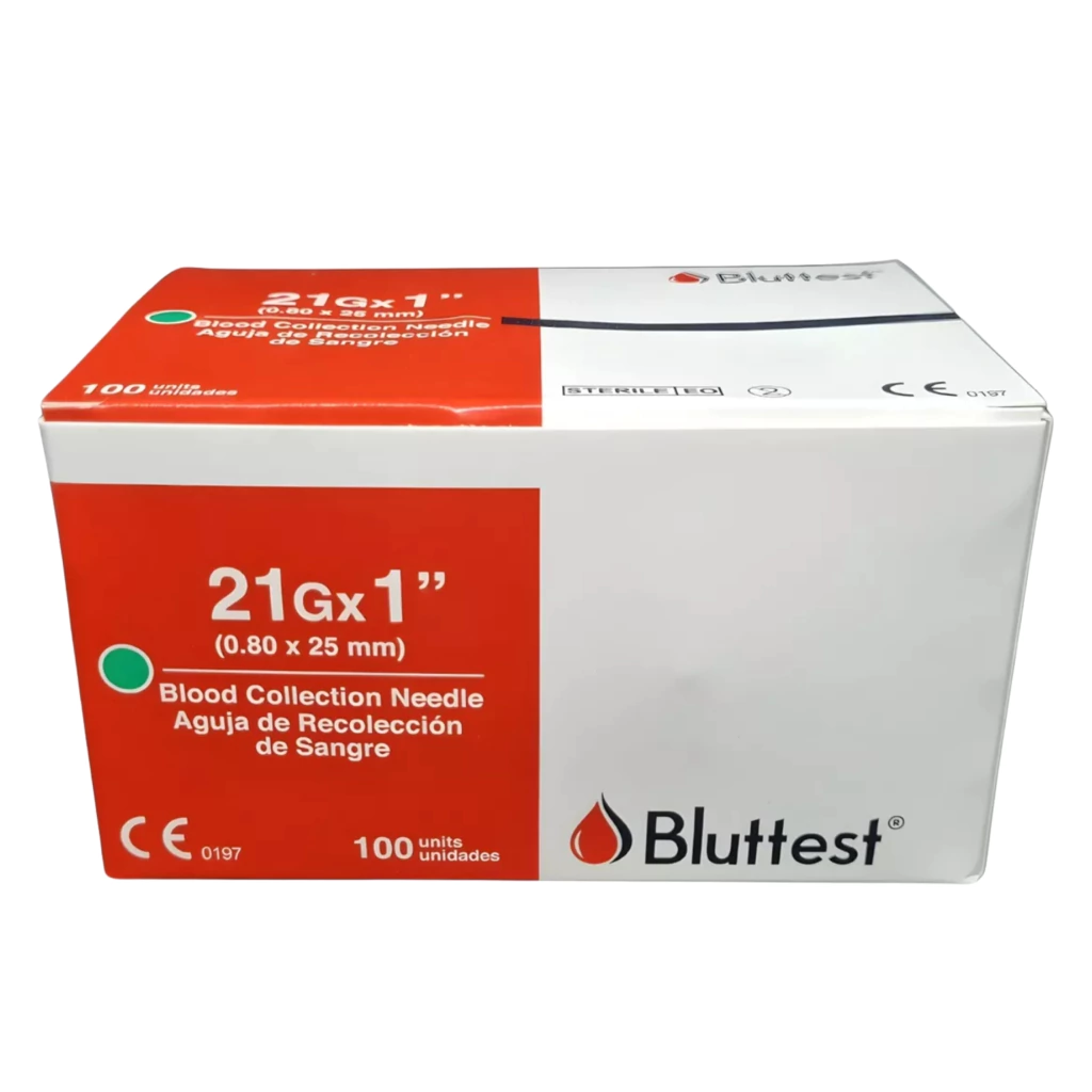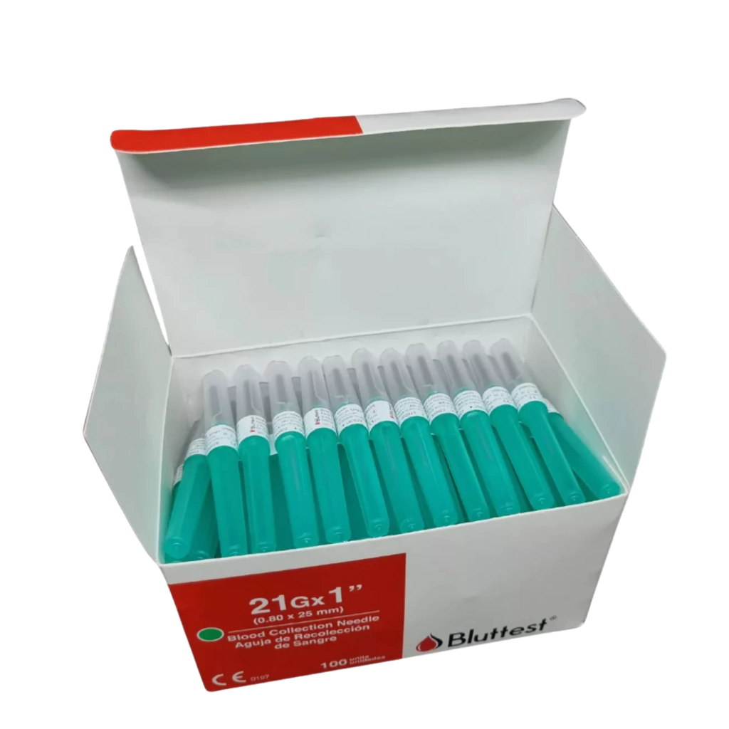 La Aguja de Recolección de Sangre Tipo Pen sin visor 21GX1″ de la marca “Bluttest” es un dispositivo médico desechable diseñado para la toma de muestras de sangre de manera eficiente y segura. Esta aguja está pensada para ser utilizada junto a un tubo para extracción de sangre con vacío y el accesorio porta tubo “holder”, proporcionando una experiencia de recolección rápida y precisa.