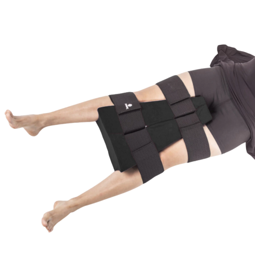 Mantiene la cadera alineada en abducción mientras el paciente está en la cama, aún cuando está dormido, y le ayudará a sanar, previniendo que la cadera gire hacia adentro o hacia afuera de su cuerpo.