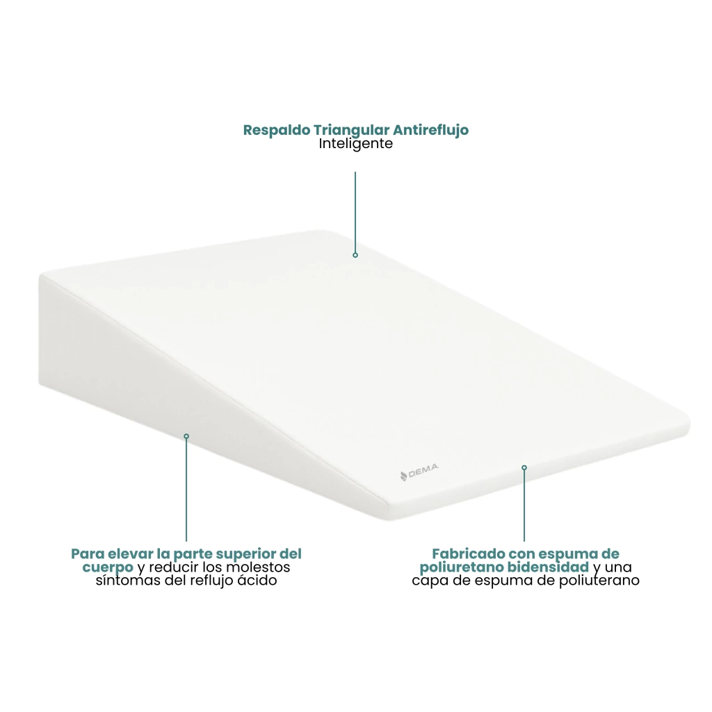Tu aliado perfecto para mejorar la calidad de tu sueño y cuidar tu salud. Diseñado con una forma triangular e inclinada, está pensado para elevar la parte superior del cuerpo, ayudando a reducir los molestos síntomas del reflujo ácido, la apnea del sueño y la congestión nasal.