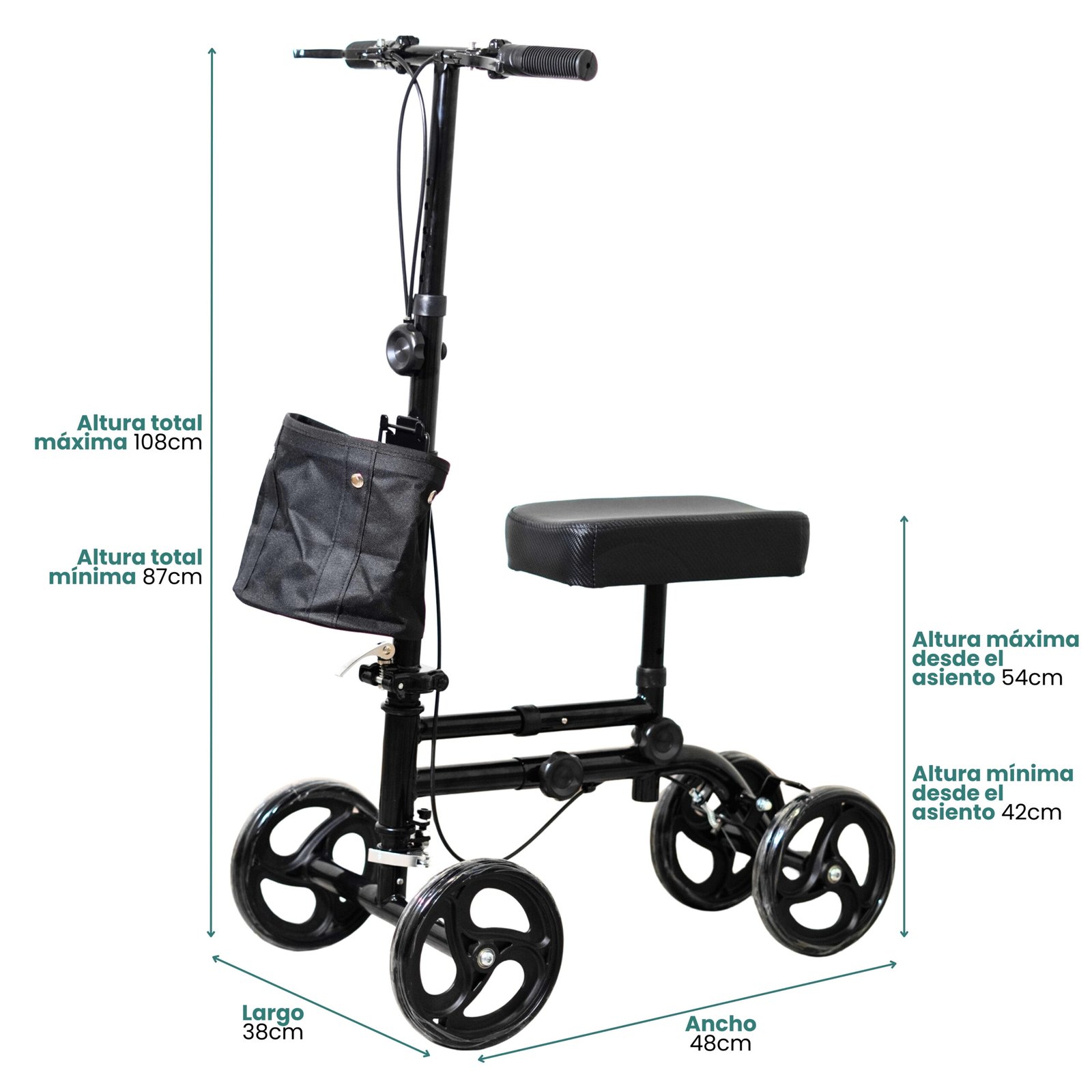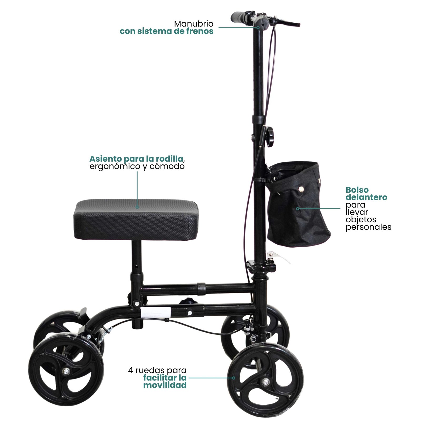 ANDADOR DE RODILLA CON 4 RUEDAS, FRENOS Y BOLSO