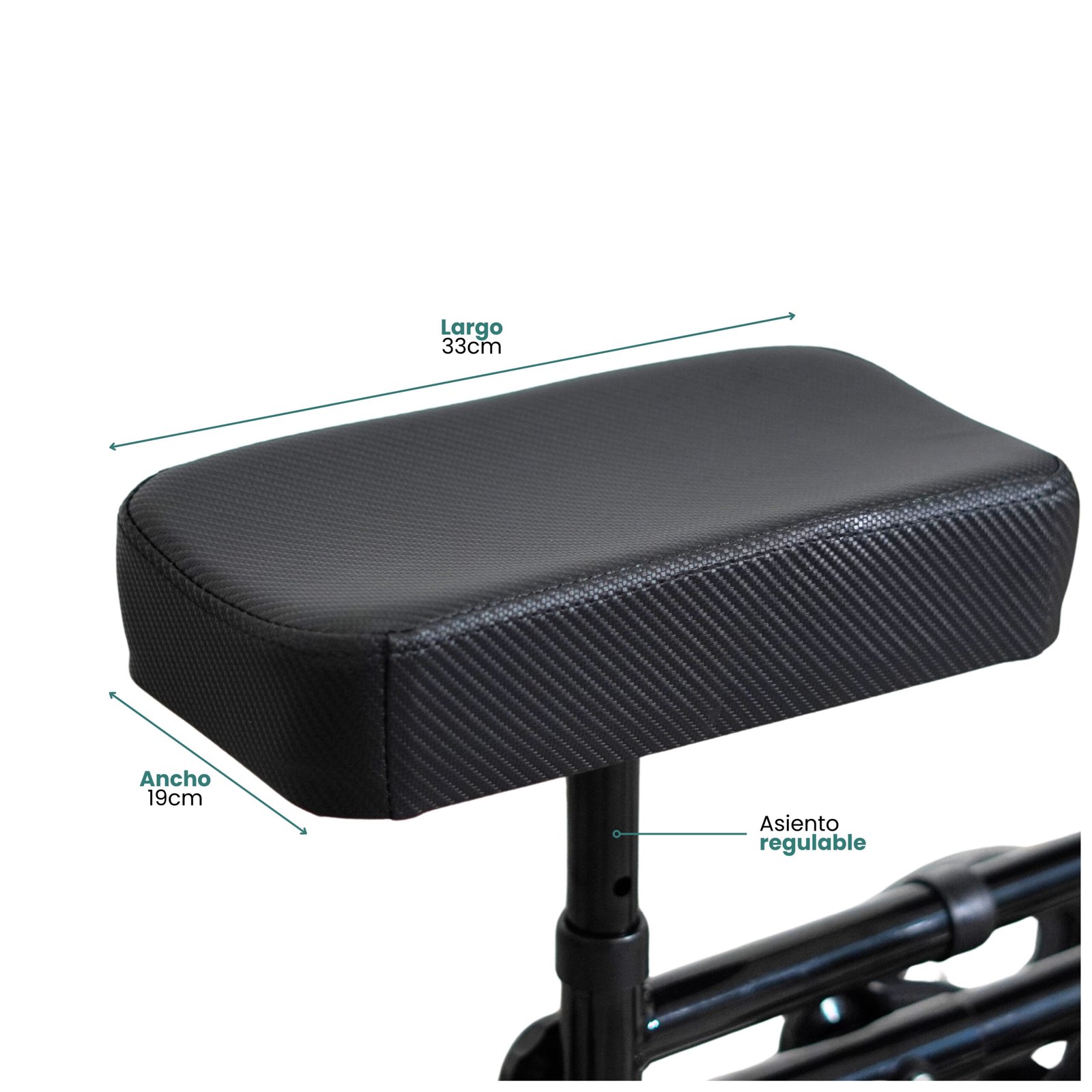 – Asiento para la rodilla, ergonómico y cómodo, pensado para apoyar la pierna lesionada sin generar presión excesiva.