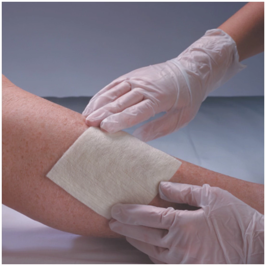 Colocar el apósito suavemente sobre la herida sin arrugas.