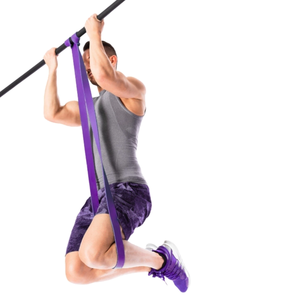 Esta banda está diseñada para asistir en el trabajo de dominadas, proporcionando soporte al cuerpo durante el ejercicio al ser colocada en la barra.