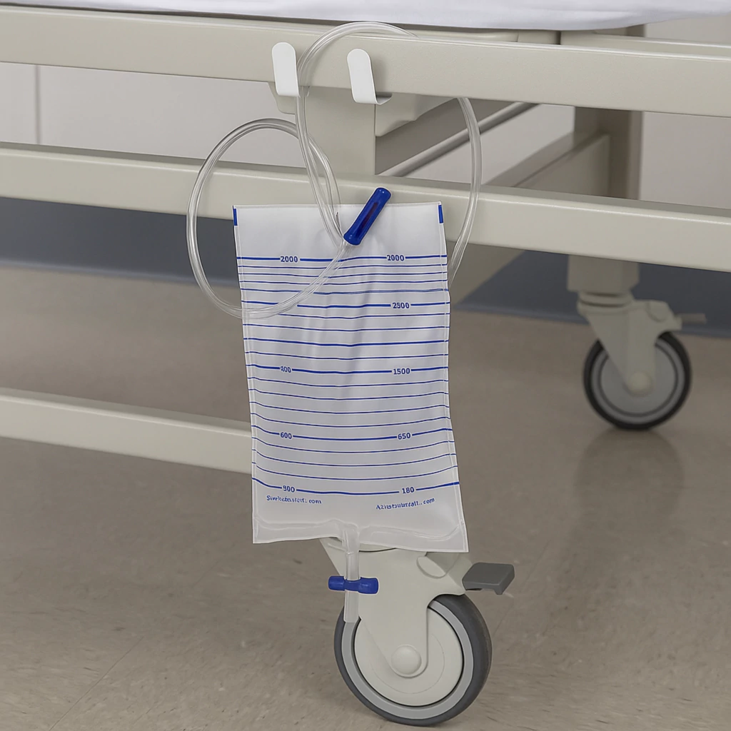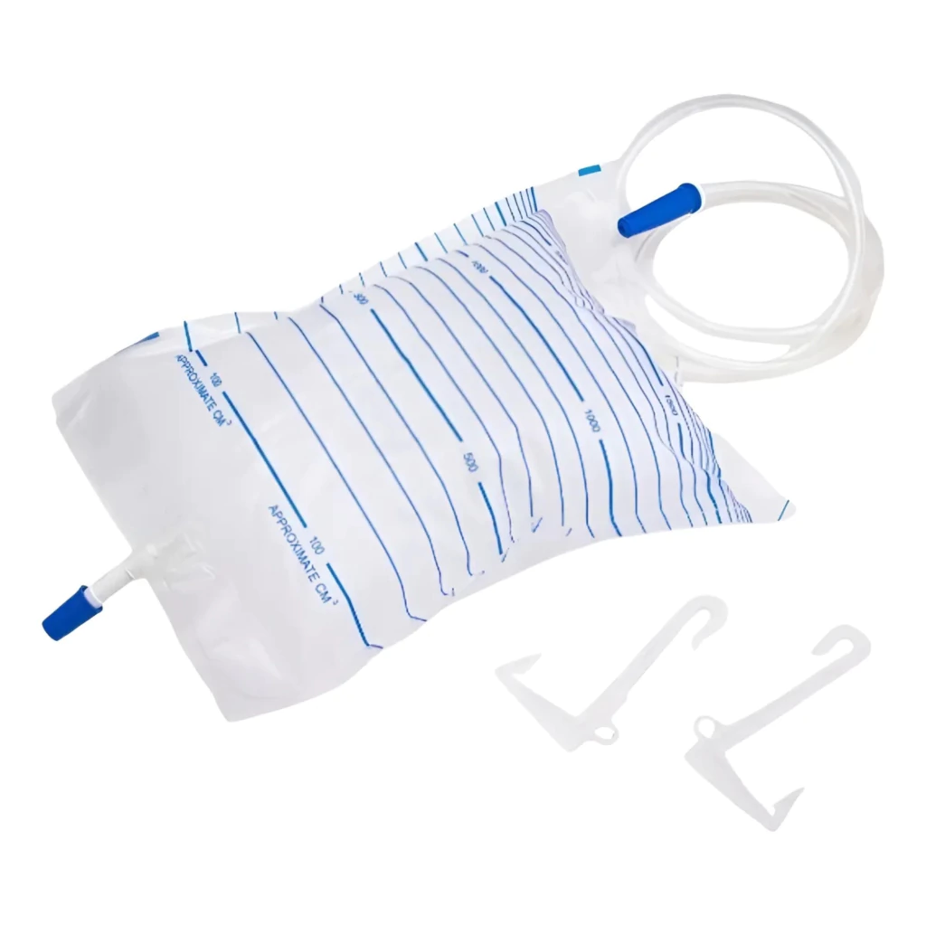 Bolsa colectora de orina K207 por 2 litros con 2 ganchos.