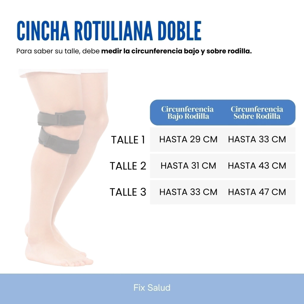Para determinar el talle adecuado, mide la circunferencia sobre y debajo de la rodilla.