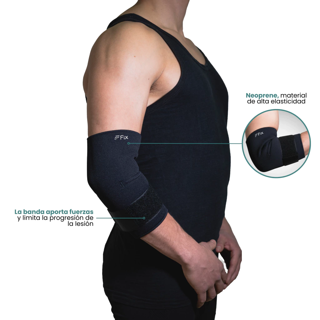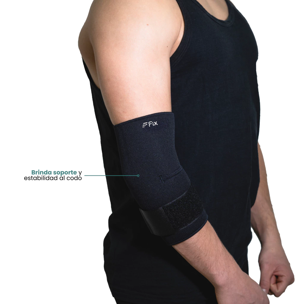 Brinda soporte y estabilidad al codo, ayudando a prevenir esguinces y dolores articulares.