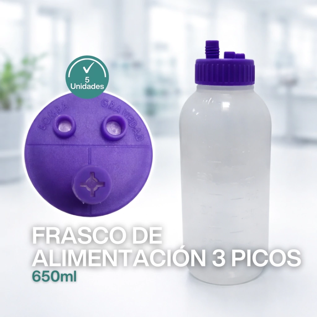 Frasco de alimentación enteral para bomba o gravedad.