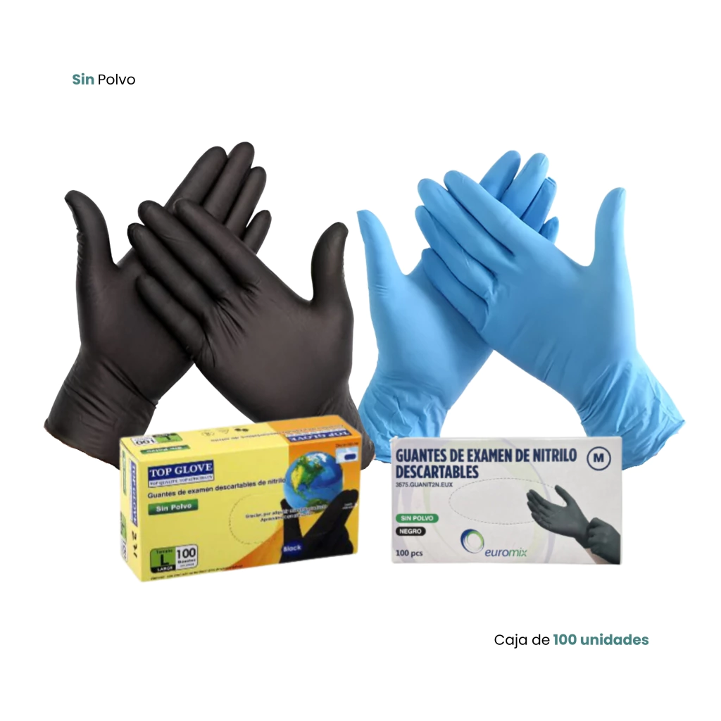 GUANTES DESCARTABLES DE NITRILO NEGRO O AZUL – MARCA EUROMIX O TOP GLOVE