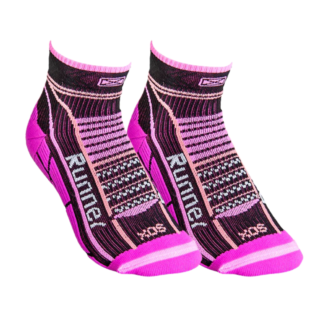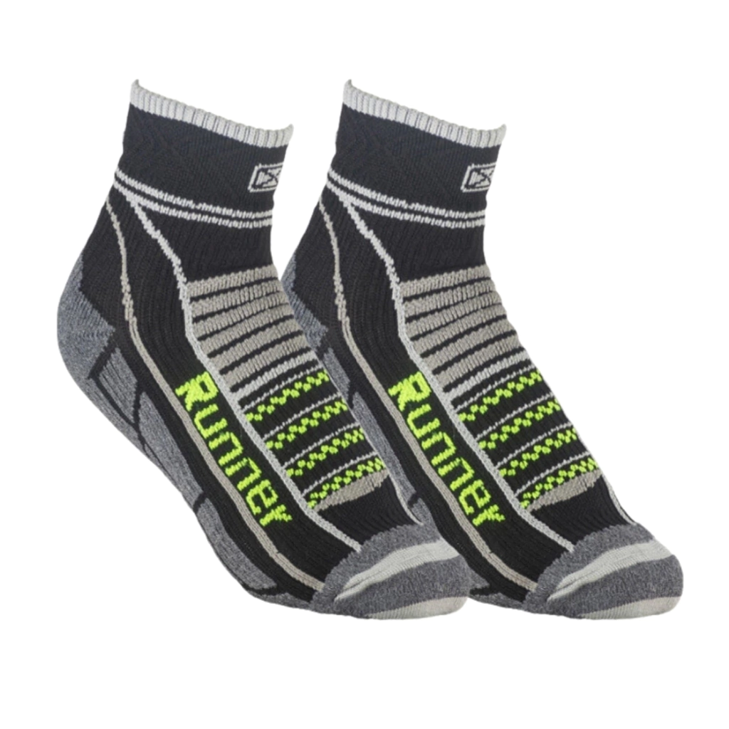 Medias de compresión pensadas para el deportista. Desarrolladas para contribuir a la re-circulación del sistema sanguíneo y a la contención de los músculos del pie. Colaboran en la prevención de la fascitis plantar por la compresión transmetatarsal. Desarrolladas específicamente para Trail Running. Puño doble, caña y pie anatómicos que brinda un calce perfecto. Diseñadas para pie izquierdo y pie derecho. Canales de ventilación y zonas de amortiguación. El acolchado en la zona del empeine y el talón, disminuye el impacto y las ondas de choque que se generan a cada paso que das. Los canales de ventilación, ayudan a mantener los pies secos, esto es muy importante ya que la piel húmeda es una de las principales causas de ampollas. Costura de puntera extra plana. Talón y puntera reforzados. Secado rápido gracias a su composición.