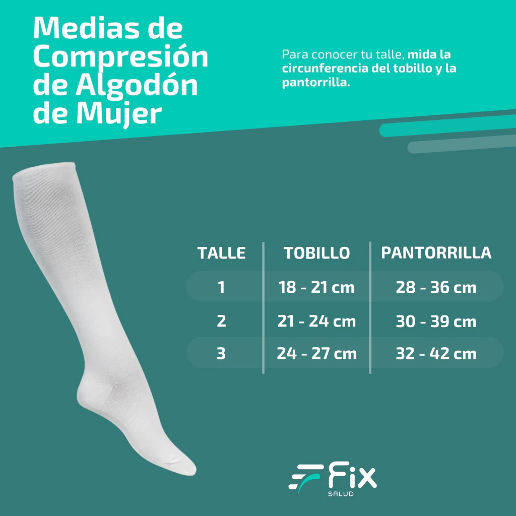 Tip: Si tienes pantorrillas prominentes, es recomendable elegir un talle mayor. Coloca las medias por la mañana al levantarte, antes de que las piernas se hinchen al caminar.
