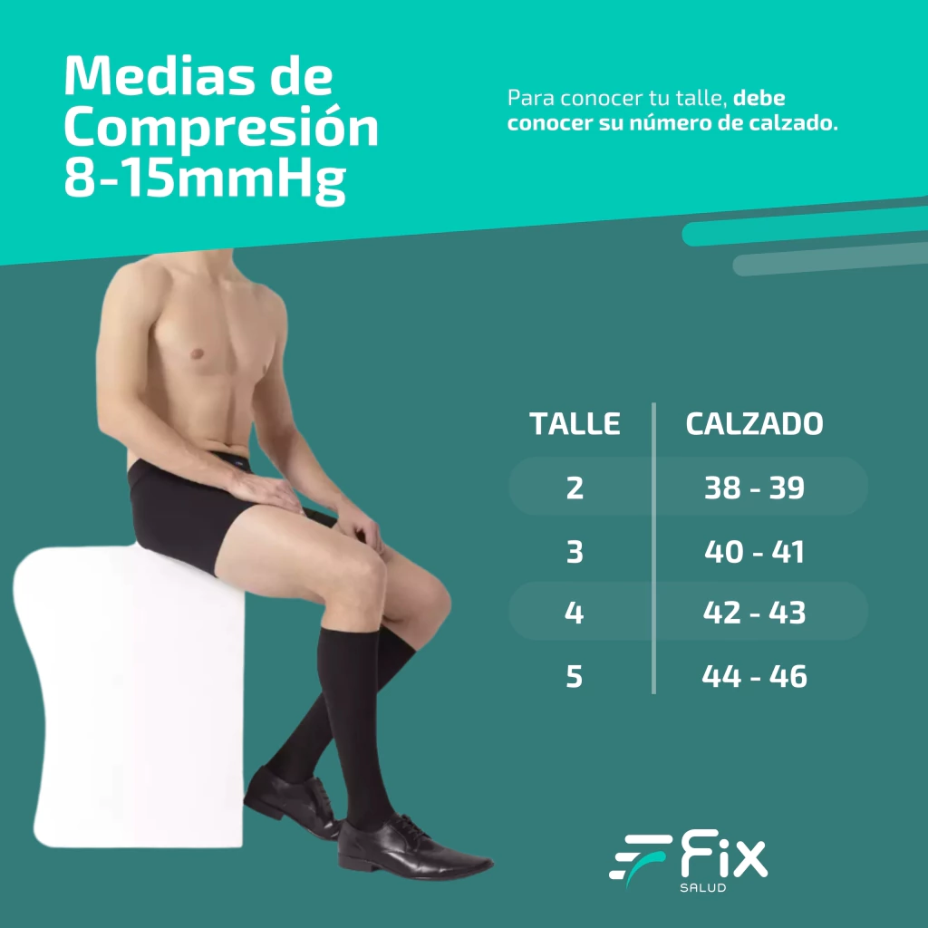 Compresión ligera (8-15 mmHg): Ideal para prevenir fatiga y ligera hinchazón en piernas. Recomendadas para actividades prolongadas o viajes largos.