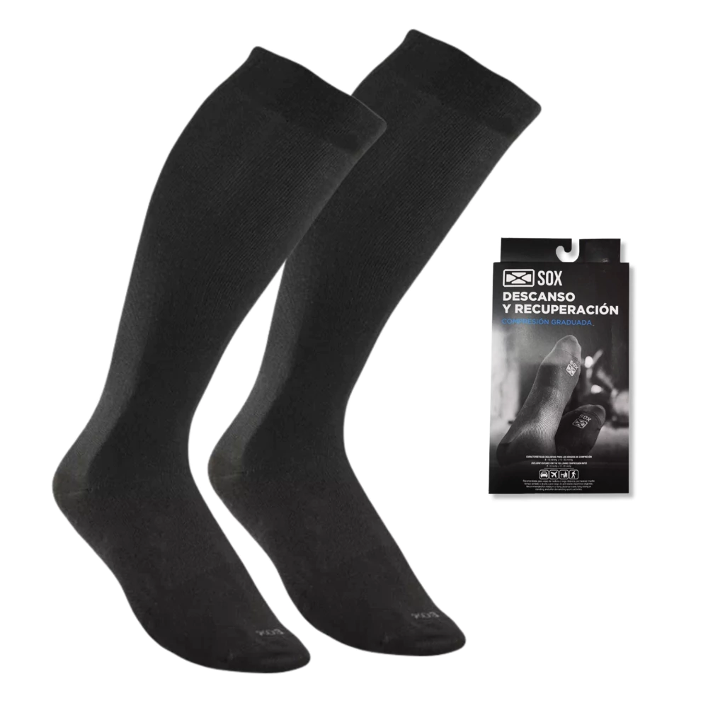 Descripción del producto: Medias de compresión graduada con áreas de presión específicas de 15-20 mmHg, diseñadas para proporcionar mayor compresión en el tobillo, que disminuye gradualmente hacia la parte superior de la pierna. Están confeccionadas con un tejido tricapa que otorga mayor elasticidad y confort. Además, cuentan con puño doble, costura de puntera extra plana y talón y puntera reforzados. Su composición permite un secado rápido, lo que las hace prácticas para el día a día.