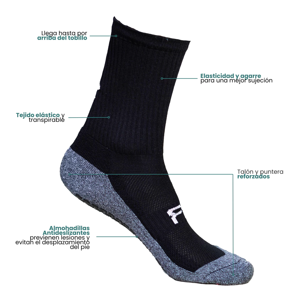 Diseño antideslizante: Con puntos de goma en la planta y el talón para mejorar la tracción dentro del calzado.