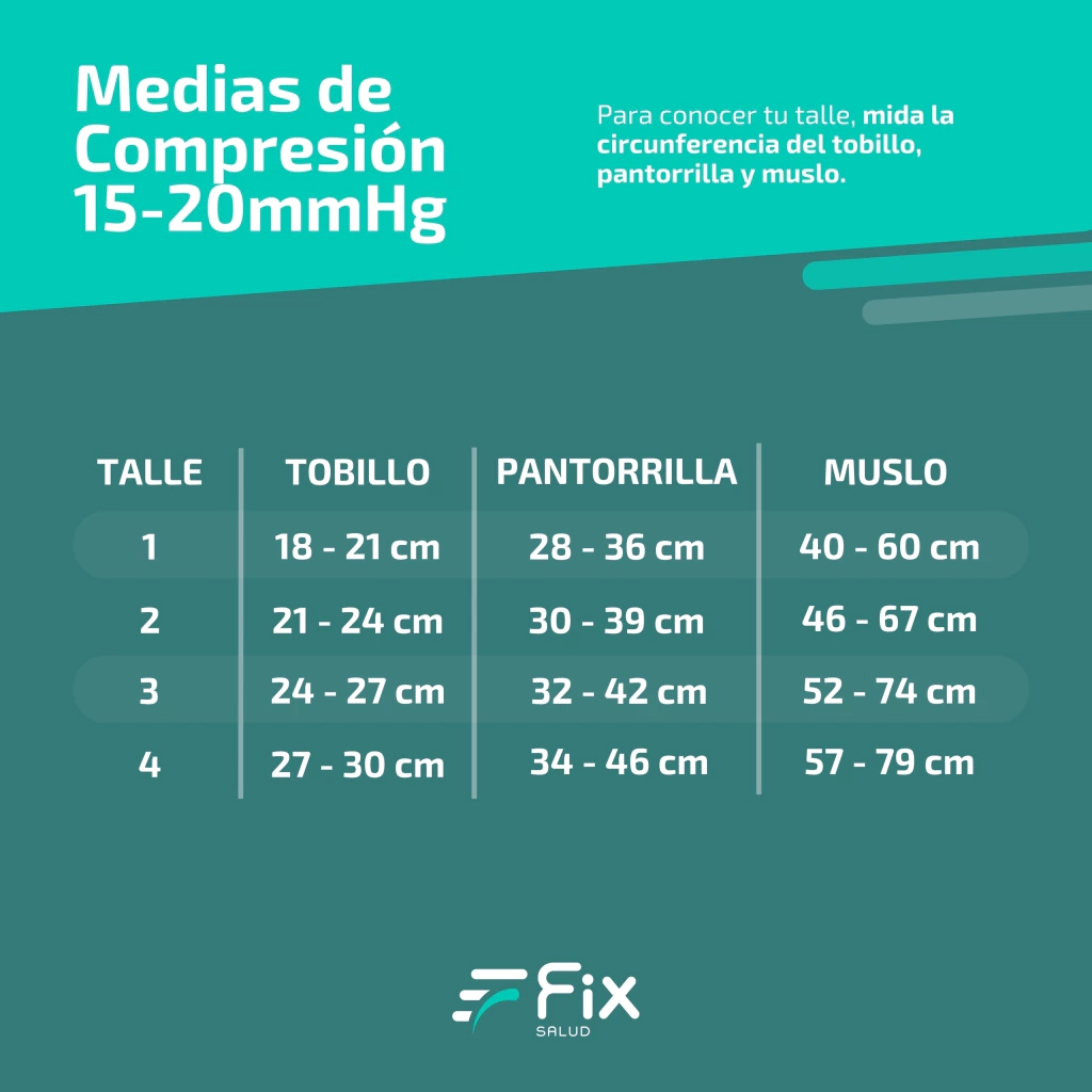 Talle 1: Tobillo 18/21 cm, Pantorrilla 28/36 cm, Muslo 40/60 cm