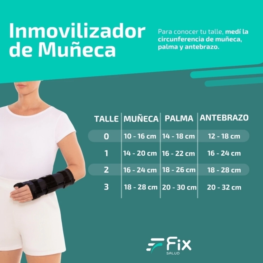 Talle 1: circunferencia palmar desde 16 cm hasta 22 cm; muñeca desde 14 cm hasta 20 cm; antebrazo desde 16 cm hasta 24 cm.