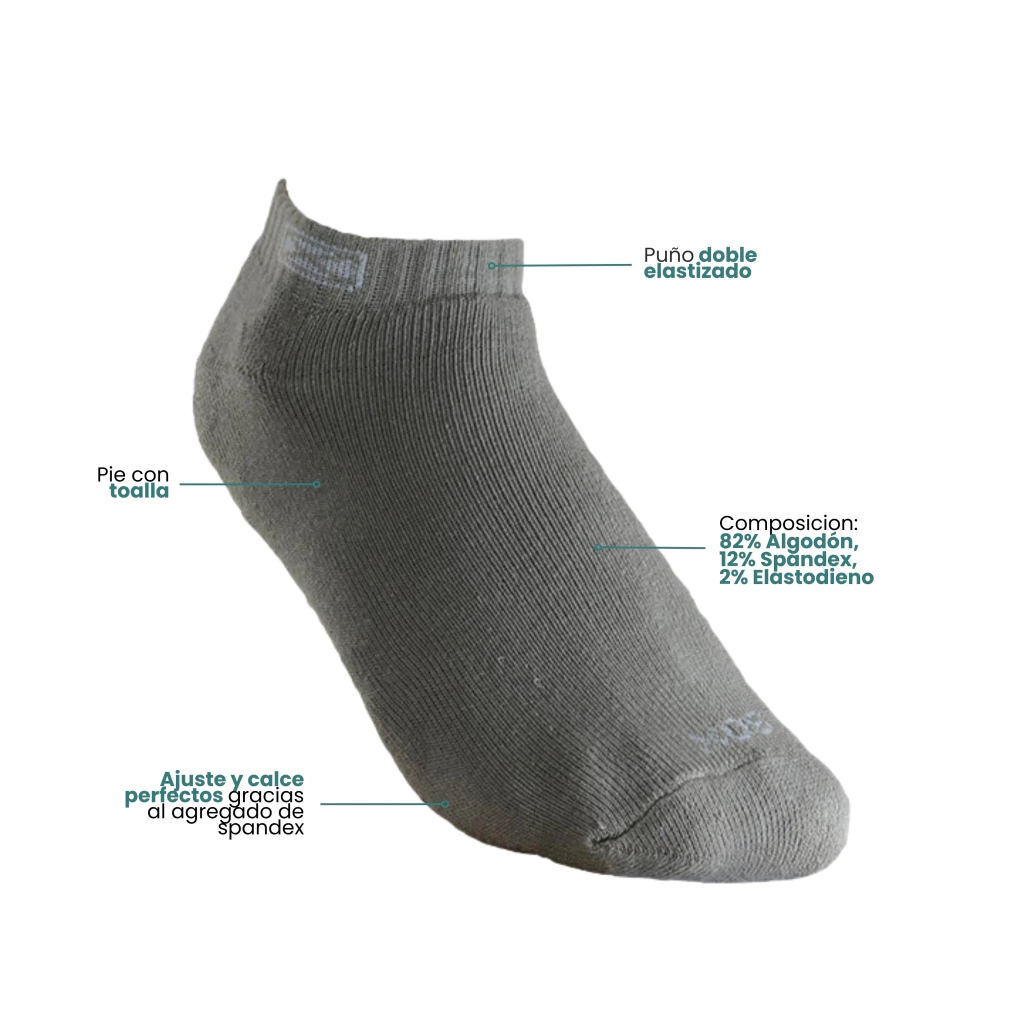 Art. DE351A PACK SEMANAL: Puño doble elastizado, pie con toalla, caña corta, costura de puntera extra plana, talón y puntera reforzados. Ajuste y calce perfectos gracias al agregado de spandex.