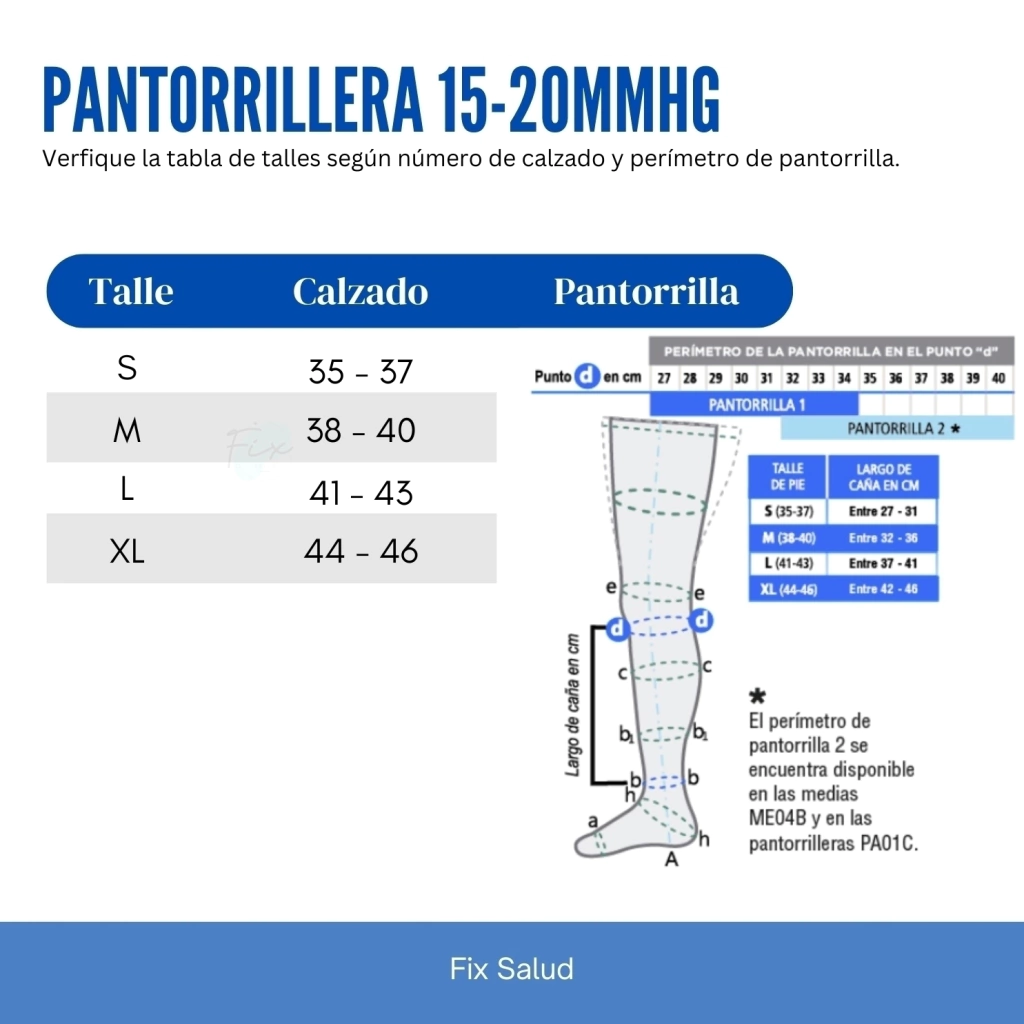 Se extiende desde el tobillo hasta la parte inferior de la rodilla. Pantorrilleras de compresión graduada pensadas para el deportista. Desarrolladas para contribuir a la re-circulación del sistema sanguíneo y a la contención de los músculos. Puño superior e inferior doble. El agregado de puntos de contacto permite la relajación de las tensiones propias del pie. Secado rápido gracias a su composición. Permiten que el usuario las combine con medias específicas como soquetes para running, por ejemplo.