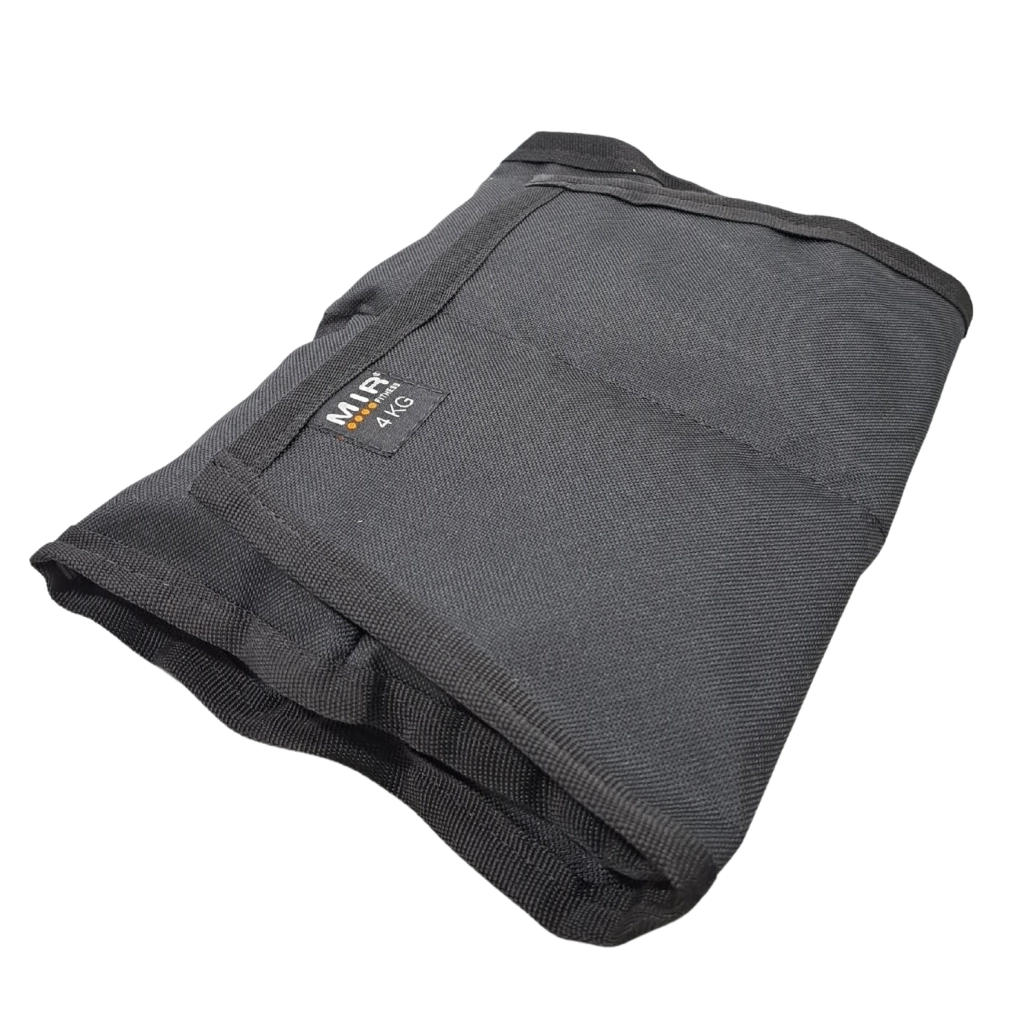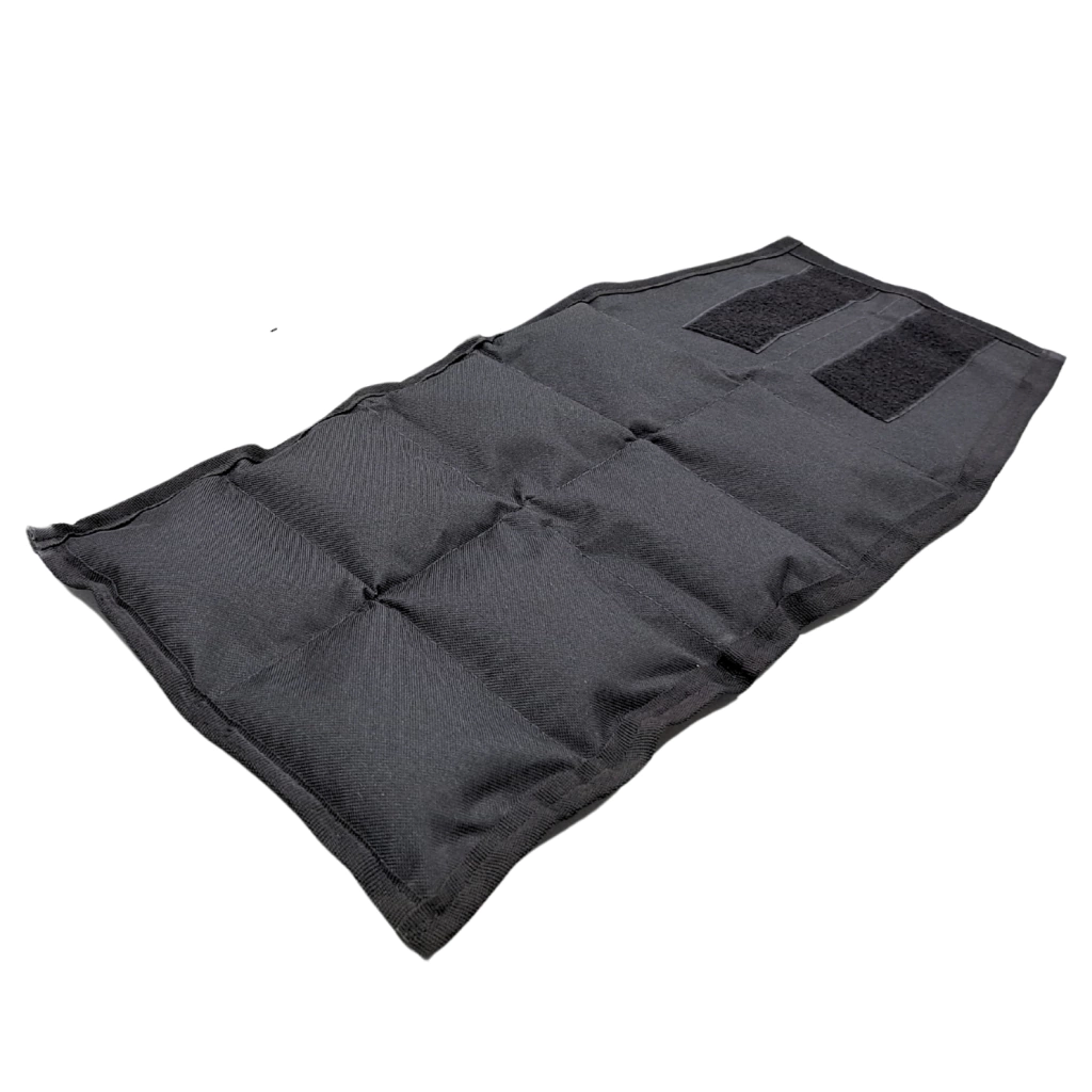 -Forro de tela, relleno con peso según modelo (Económico: Arena) con velcro para ajuste.