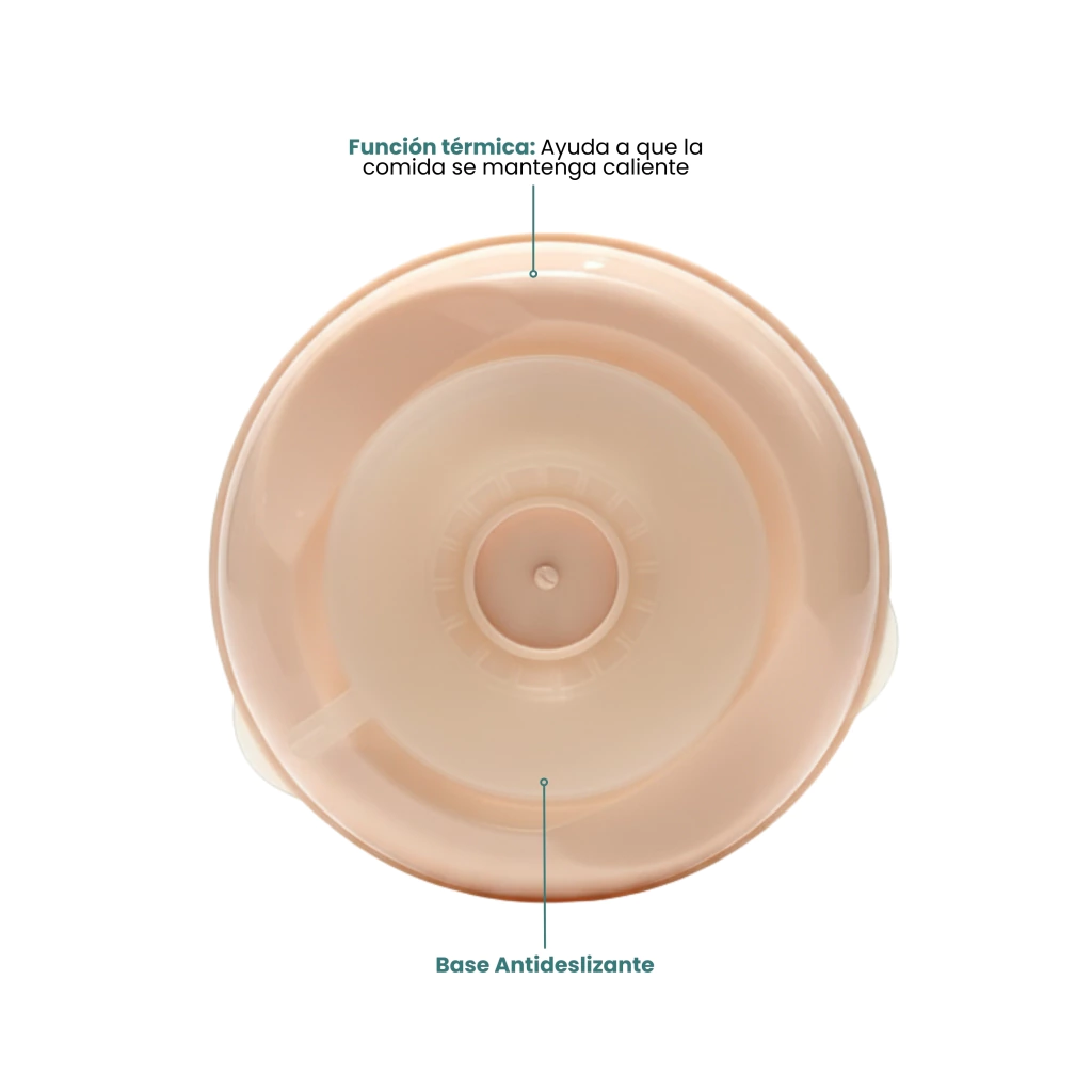 Incluye una base antideslizante que se adhiere a cualquier superficie, brindando mayor seguridad y evitando accidentes durante las comidas.
