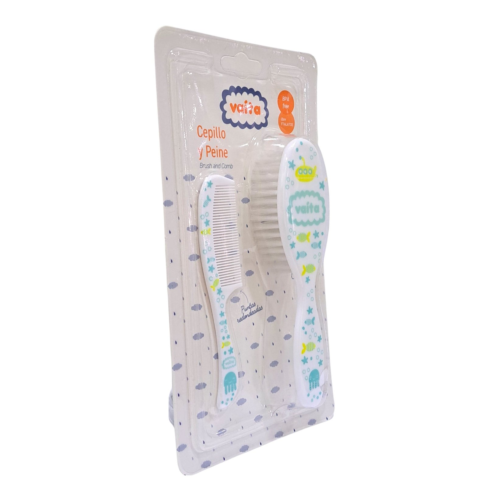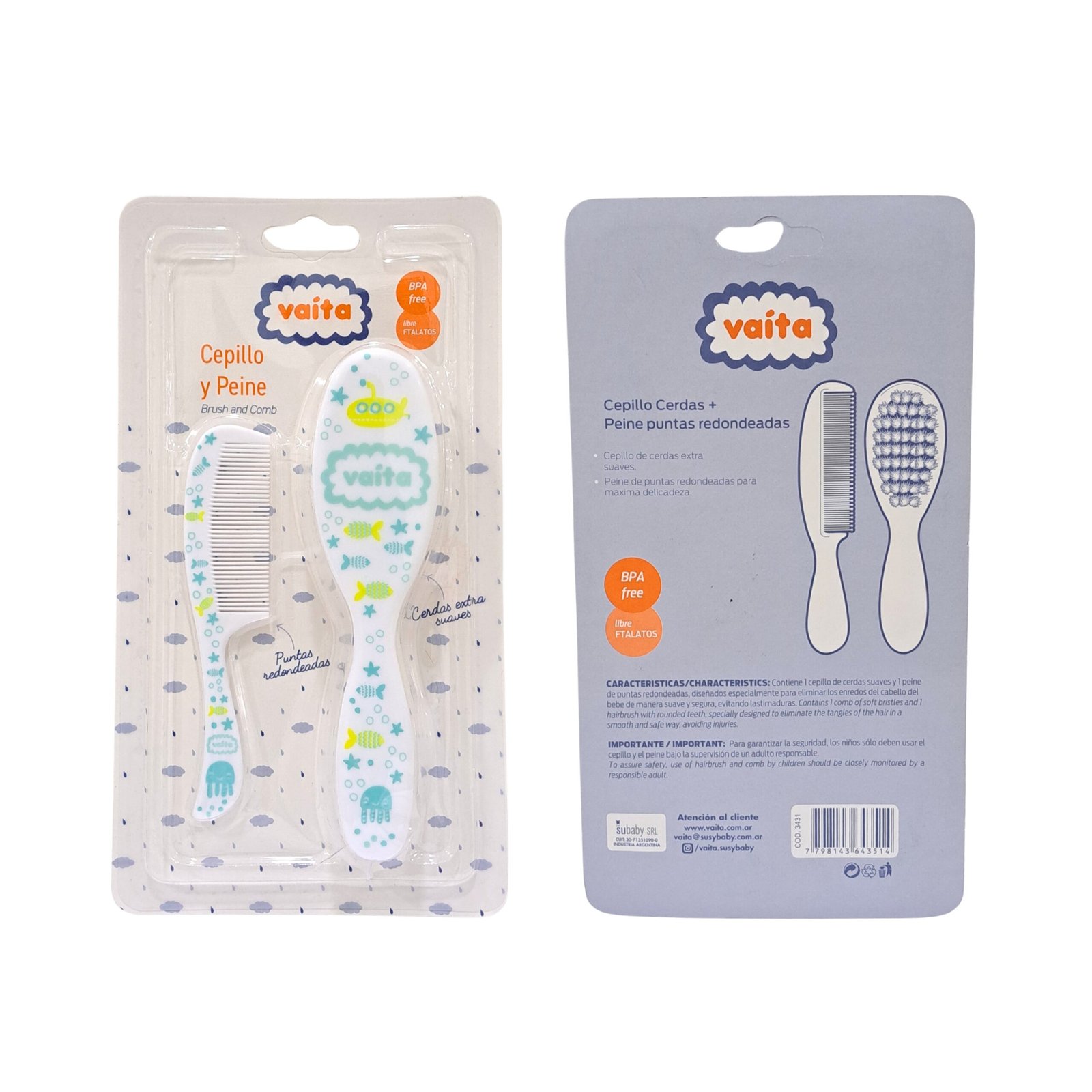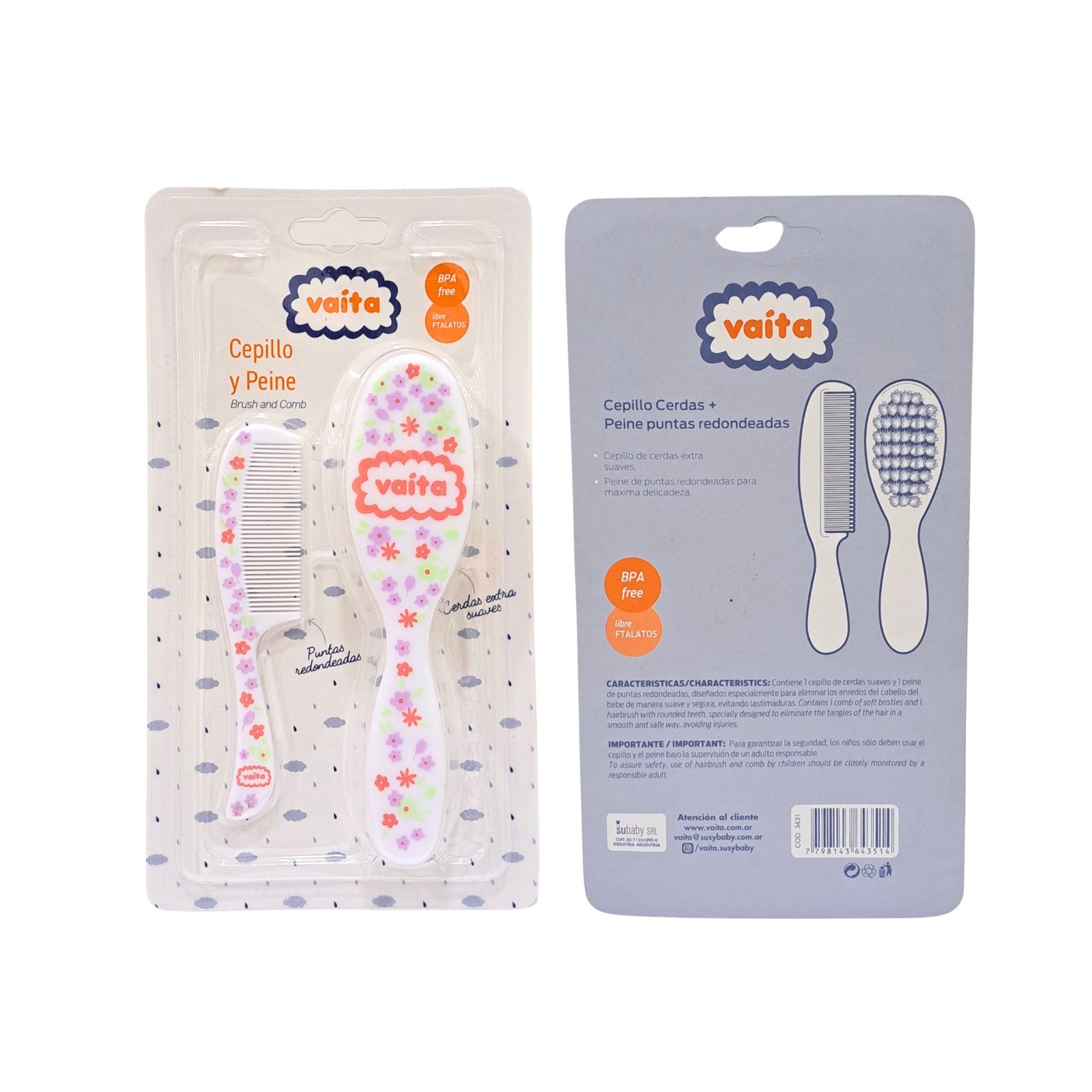 SET DE PEINE PUNTAS REDONDEADAS + CEPILLO CERDAS EXTRA SUAVES