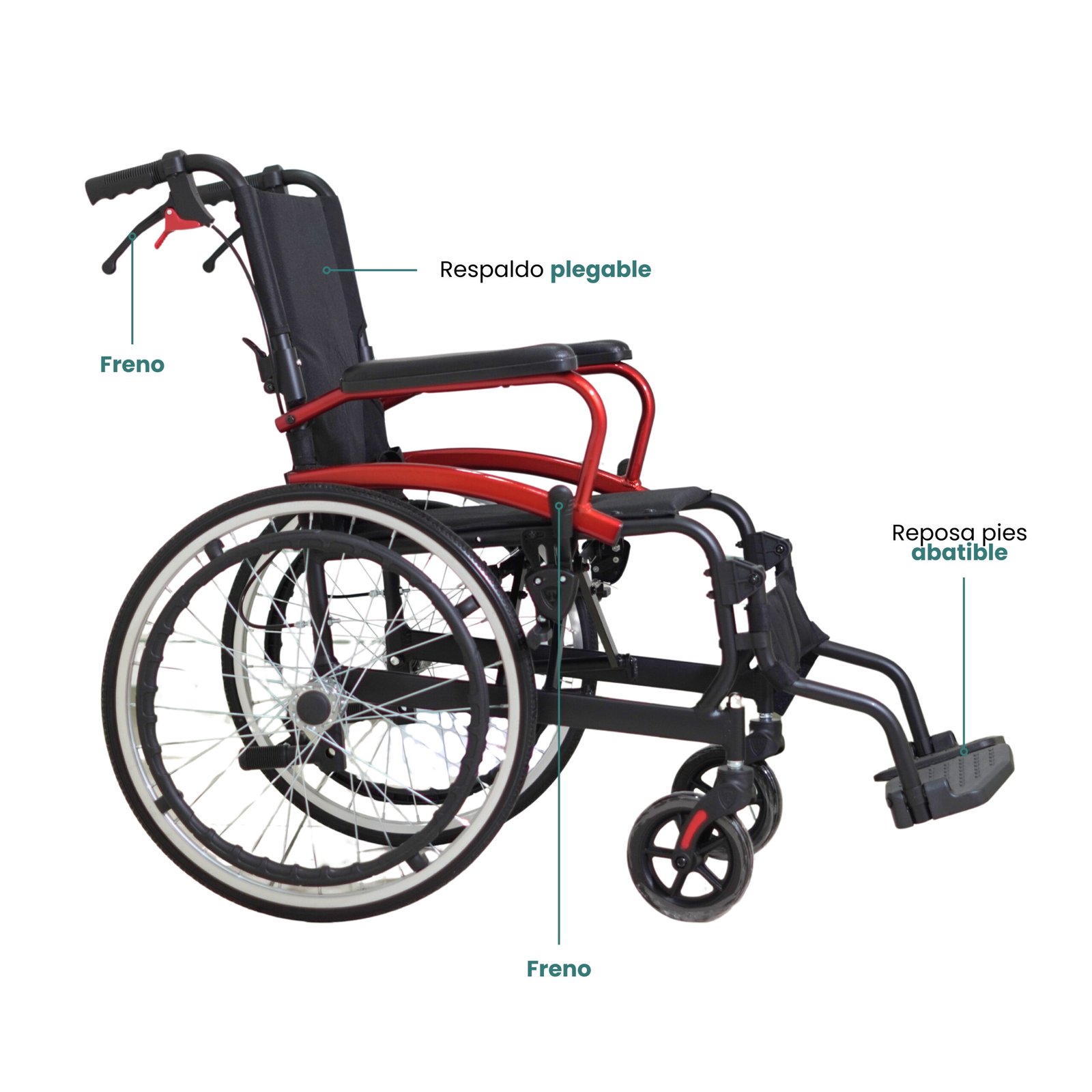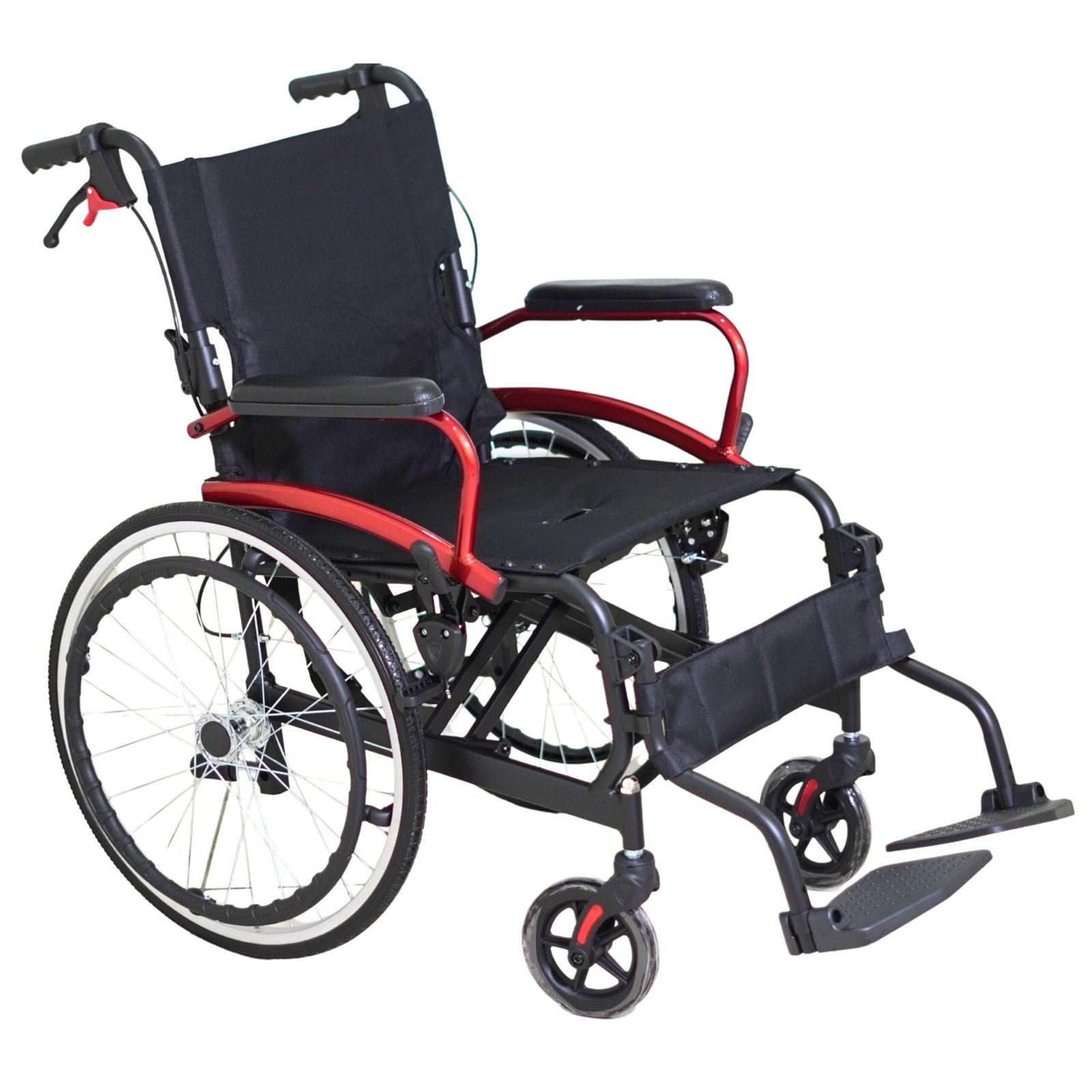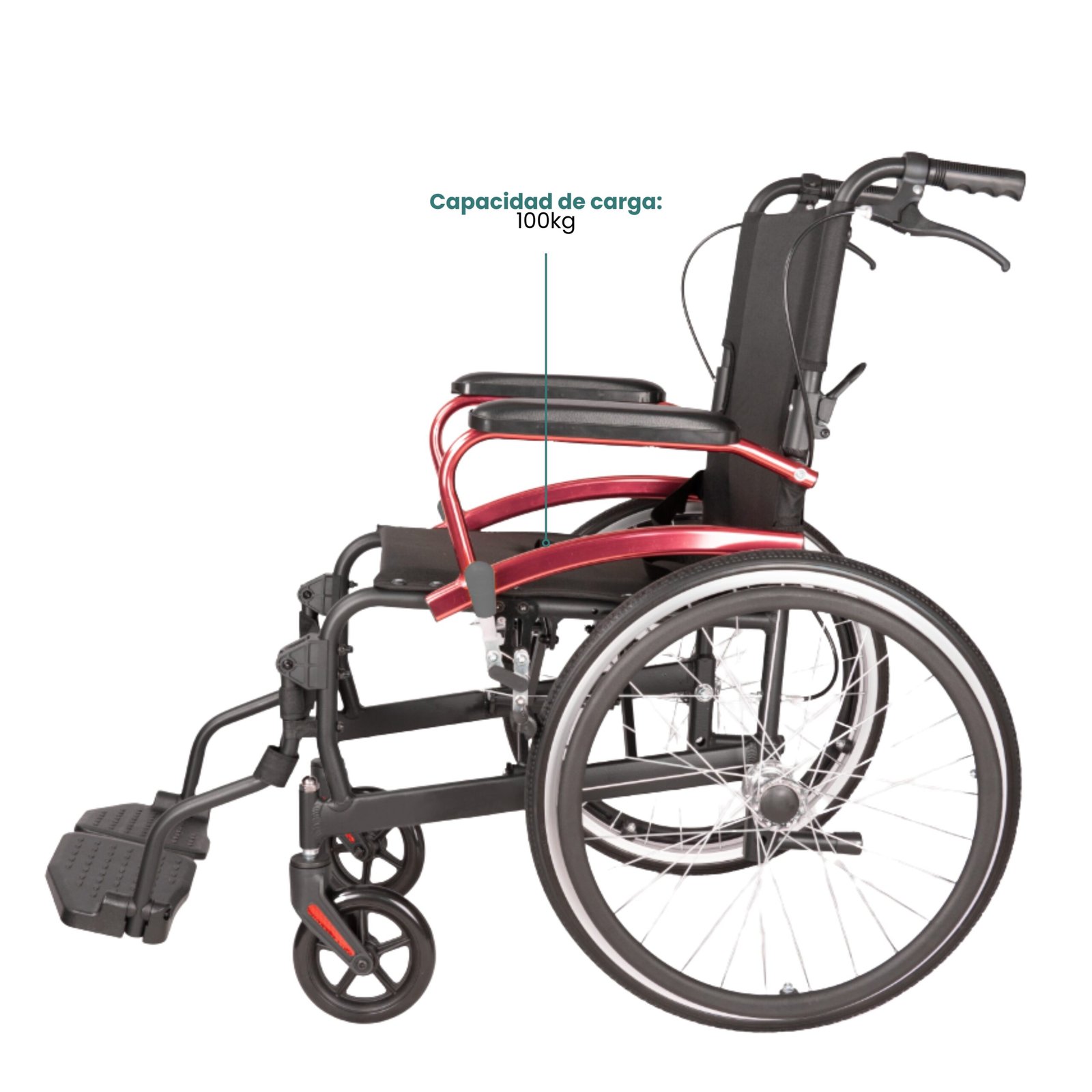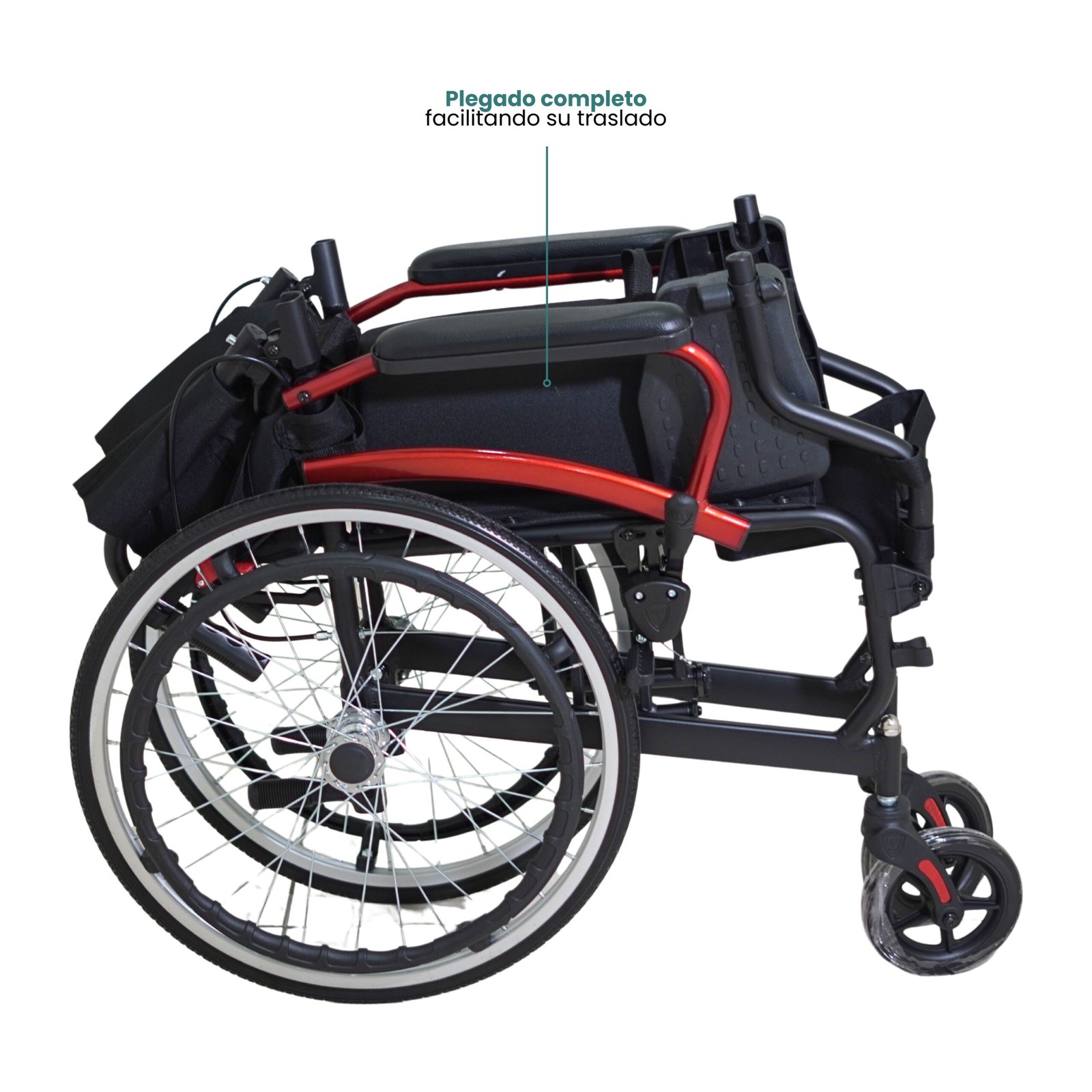 SILLA DE RUEDAS PLEGADO COMPLETO – SCQ06LAJ-20 La silla de ruedas plegable y portátil de aluminio SCQ06LAJ-20 es ligera y está diseñada para mayor comodidad con respaldo plegable, reposapiernas abatible y capacidad de carga de 100 kg.