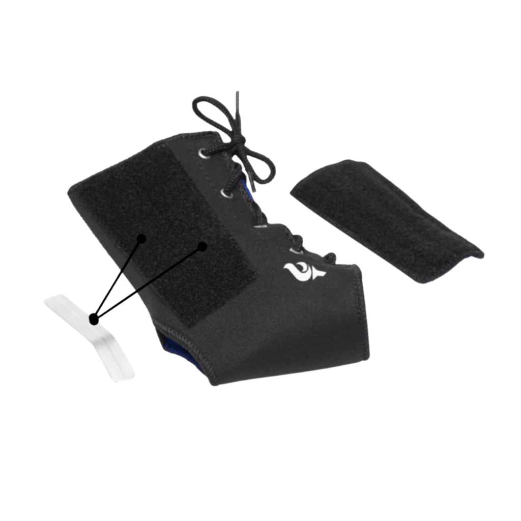 Posicionar en el tobillo y ajustar la solapa en el empeine.